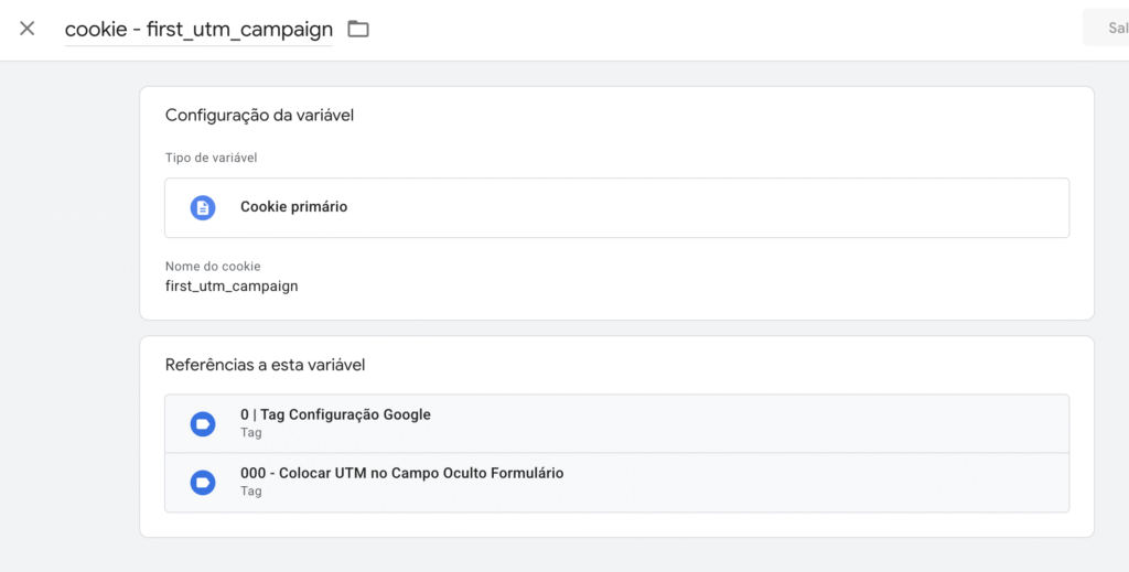 Nome da Variável: cookie – first_utm_campaign